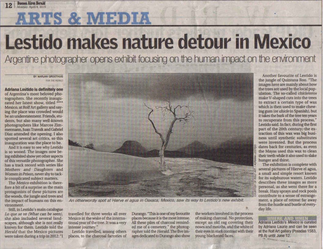 La exposición de Adriana Lestido, con la curaduría de Adriana Lauría, indaga sobre su investigación en tierras mexicanas, donde retrató los distintos paisajes de los bosques aztecas. El recorrido visual muestra las distintas formas de apropiación del espacio, por parte del hombre y por parte de la naturaleza, así como las diferentes formas de vida que habitan ahí. Como señala su curadora, el placer de la mirada de Lestido “se transmite en la sensualidad con que se detiene en las texturas de las rocas, en las brumas originadas por la intensa humedad reinante, que se empecinan en desdibujar contornos y figuras.
